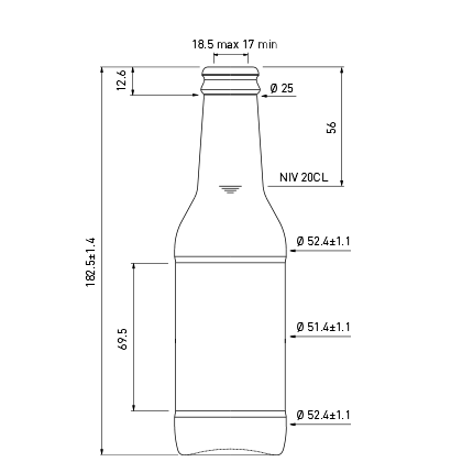 1 / 2Zoom In Long Neck beer bottles Long Neck crown 20 cl Flint Reference number : NBIK20BGCA Long Neck crown 20 cl Flint Read more Opening Crown Cork Сolor White Capacity 20 cl Weight 135 g Height 182.5 mm Diameter 52.0 mm Palletization VMF 2’772 Add sample Information request Add to Wishlist Compare AvailableSale from a pallet Add to Wishlist Description Downloads Description Long Neck crown 20 cl Flint Downloads Technical drawings PDF