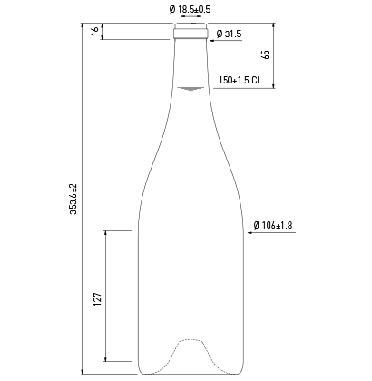 Con una capacità di 150 cl (Magnum), questa bottiglia è perfetta per vini premium, edizioni limitate o occasioni speciali. L’ampia superficie offre inoltre spazio sufficiente per etichette di alta qualità e branding personalizzato.